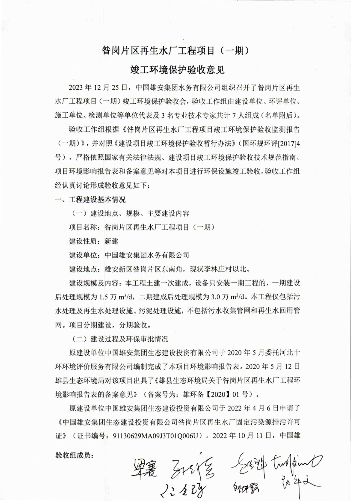 昝崗片區再生水廠工程項目(一期)竣工環境保護驗收意見